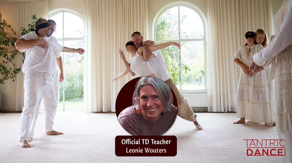 De bouwstenen van Tantric dance: Dansen met polariteiten, adem en grenzen. De polariteiten worden versterkt doordat er een persoon met een blinddoek danst: de volger, degene zonder blinddoek is de leider. Wat kom jij daarin tegen? Durf je je over te geven aan jouw leider, durf je je grenzen aan te geven? Durf je als leider de dans echt te leiden, Ben je echt aanwezig of steeds afgeleid? En voor zowel leider als volger: Durf je jezelf helemaal te geven in deze ene dans? Of is er iets dat je tegenhoudt? Gedachten kunnen voorbij komen met oordelen en afwijzingen. Doe ik het wel goed genoeg?